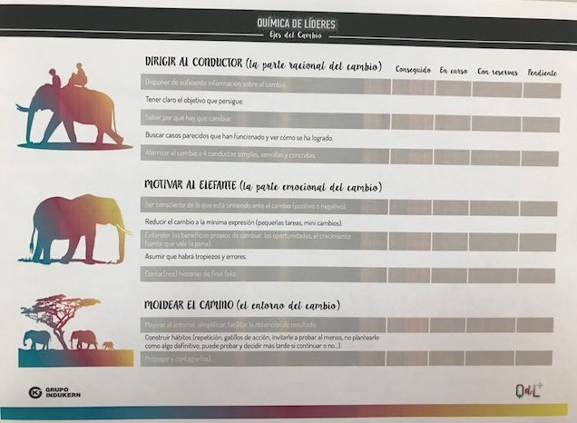“Supongo que, como todos, necesito un poco de tiempo para digerir lo hablado y vivido. Cada día un poco mejor, sería el lema. Me he dado cuenta que de un tiempo aquí, mi foco estaba desplazado, no dedicaba tiempo suficiente a mí equipo. Siempre me ha gustado la parte de gestión y desarrollo de personas, sin embargo, me había “olvidado” de esto para pasar a la reacción. Mi propósito ahora es: Volver a poner en primer término a mi equipo; revisar los apuntes QdL+; revisar los PAI, seguirlos y ejecutarlos; reajustar mis “gafas” y disfrutar del camino”.